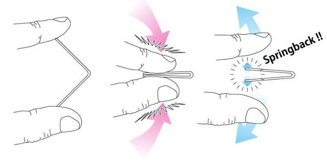 We can easily experience bending the wire and then releasing the hand to deform less than it was bent. At this time, the wire is restored to its original state. Although the transformation of 100 was applied, only about 80 was maintained and the remaining 20 were released. This is due to the'resilience' of the material. The more resilient material is, the greater its springback phenomenon occurs.