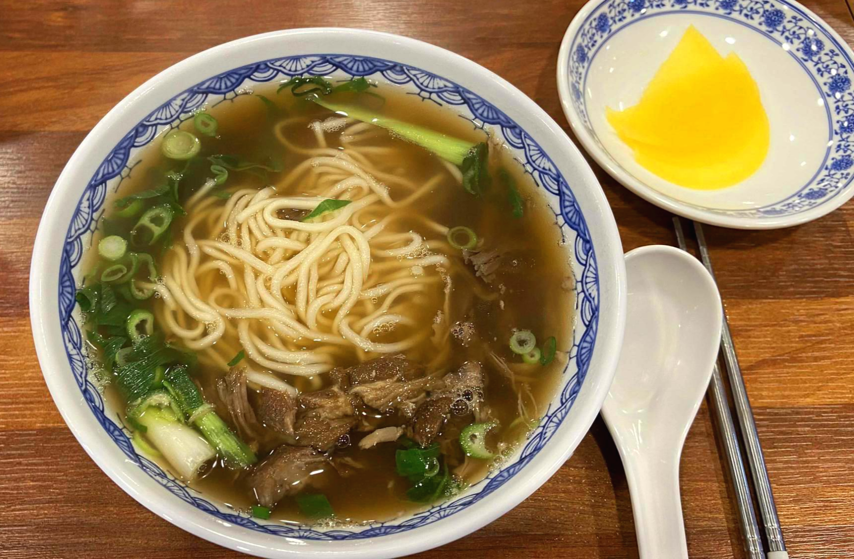 우육탕은 어느 나라 음식인가? 대만 음식으로 알고 있었다. 그런데 이 곳은 ‘홍콩식’ 우육탕 면 이라고 한다. 둘을 비교해 본적은 없어서 고급 리뷰는 못되겠지만, 기름지지만 느끼하지 않고 시원하면서 깊은 국물에 적절한 굵기 적절한 탄력을 가진 면발이 일품이다.