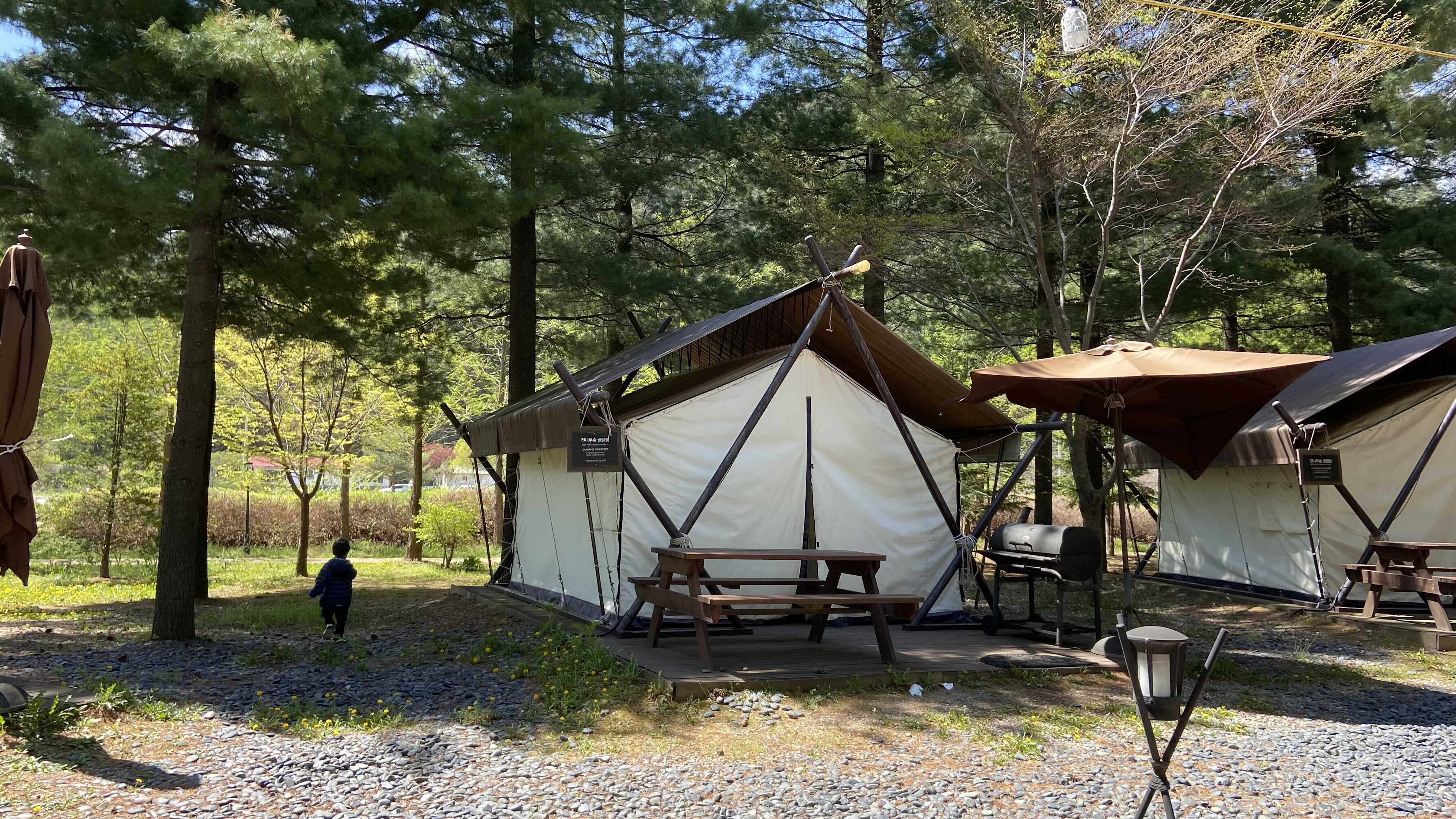 아이들이 매우 좋아하는 시설들이 오밀조밀 잘 모여 있다. 미로 꽃밭도 좋아하고, 모래 놀이터가 있는 작은 나무 성, 실내 수영장, 실외 수영장, 넓은 잔디밭과 작지만 그런데로 흥미를 끄는 동물 농장, 고기부터 장작까지 주는 글램핑 시설(숙박은 안되는 것 같다)