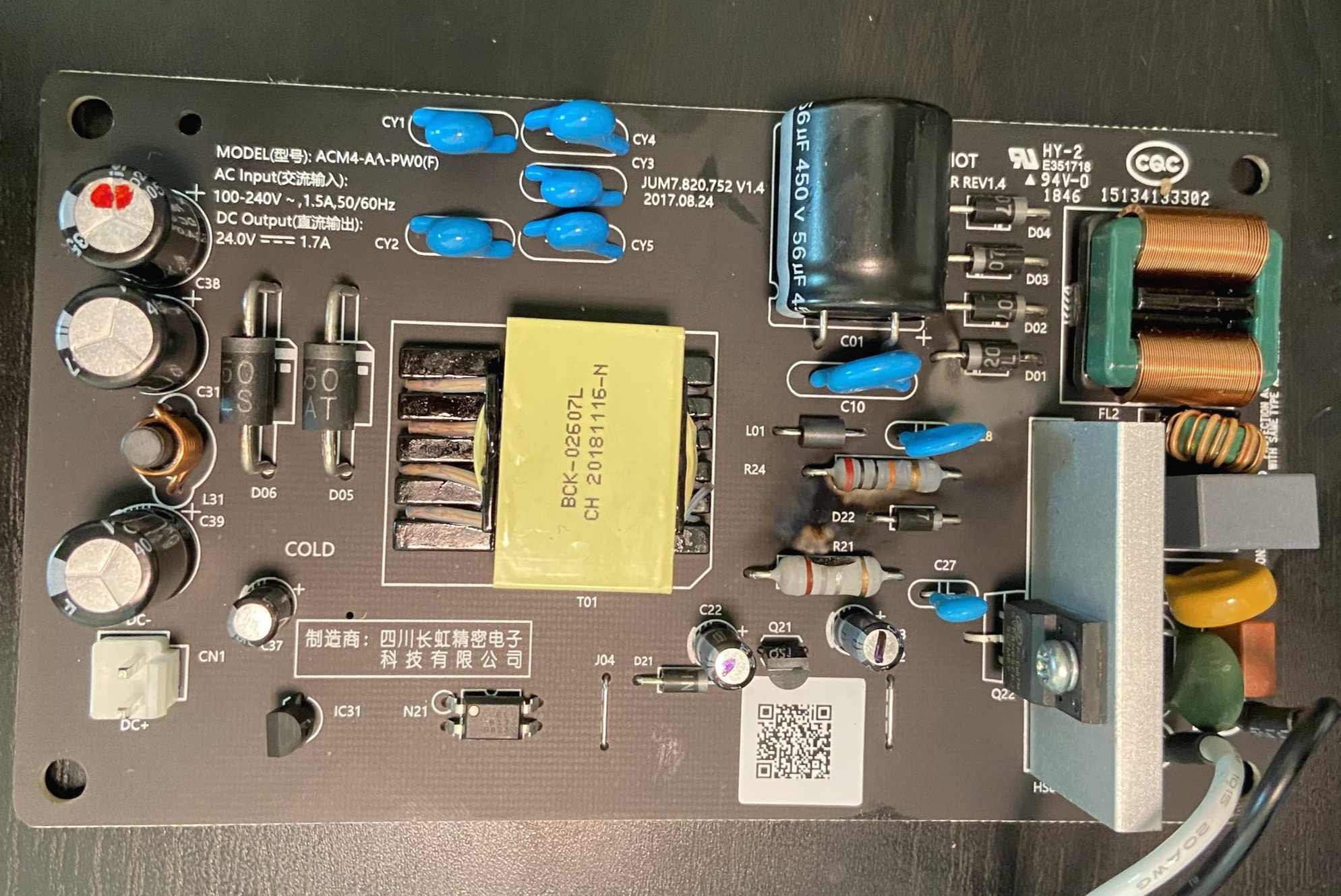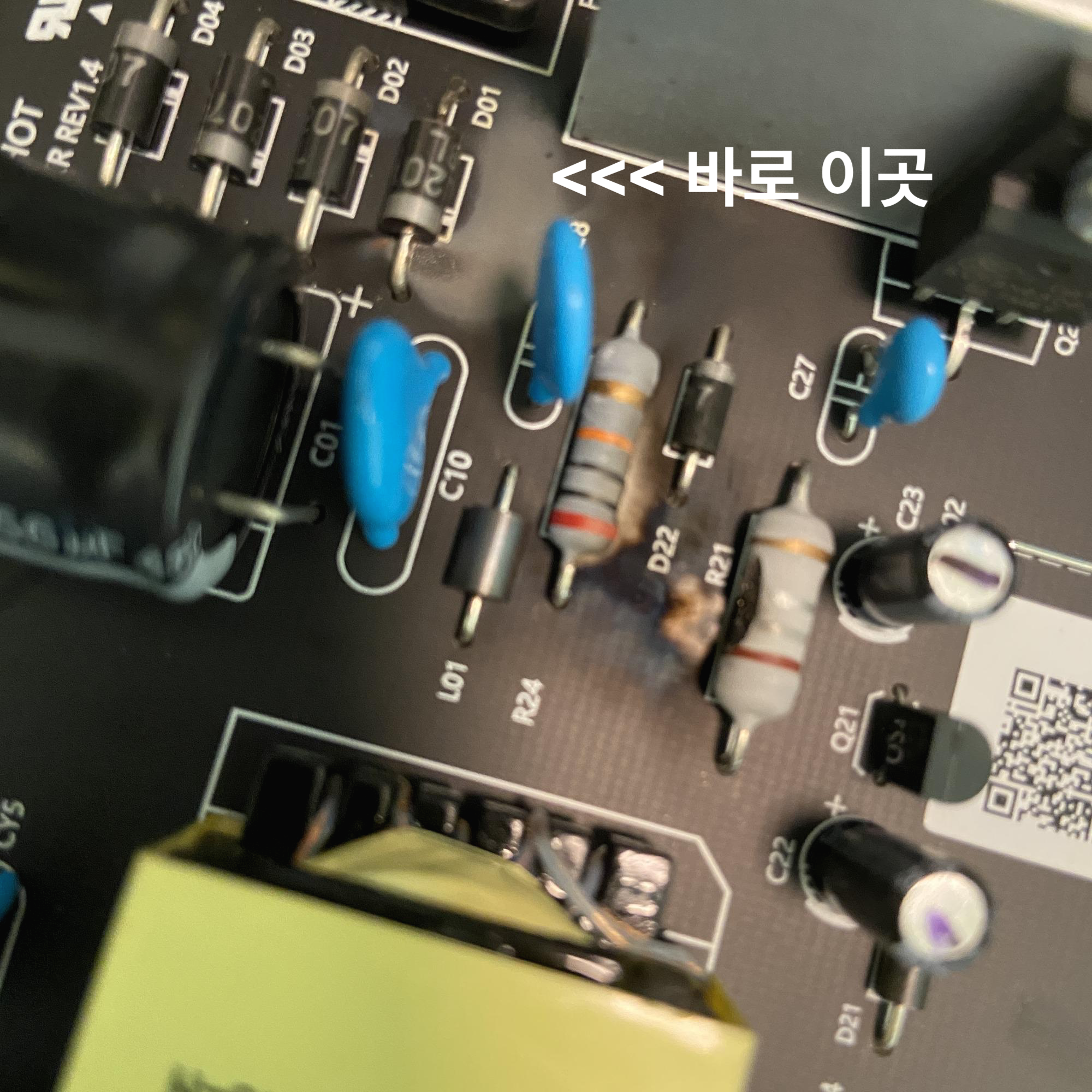 구글링을 통해서 알아본 결과 물이 들어 갔을 가능성이 크다고 보였다. 실제로 물이 들어가면 취약한 구조라고 한다. 공기청정기 상부에 컵도 올려두고 아이들이 무언가 흘릴 가능성이 많았던게 사실이라. 원인은 물의 유입으로 확정을 짓고, 해결방법을 찾아보니 보드 교체 혹은 외장 아답터의 연결이었다. 보드가 하는 역할이 적절한 전압과 직류를 공급하는 것이어서. 해당하는 전압과 전류를 공급해주는 외장 아답터를 써도 무방한 상황이었다. 그리고 보드를 교체해도 혹시 또 물이 유입되면 같은 상황이 벌어질 수 있기 때문에 보드교체를 포기하게 되었다. 언제든지 물이 다시 들어 갈 수 있으므로