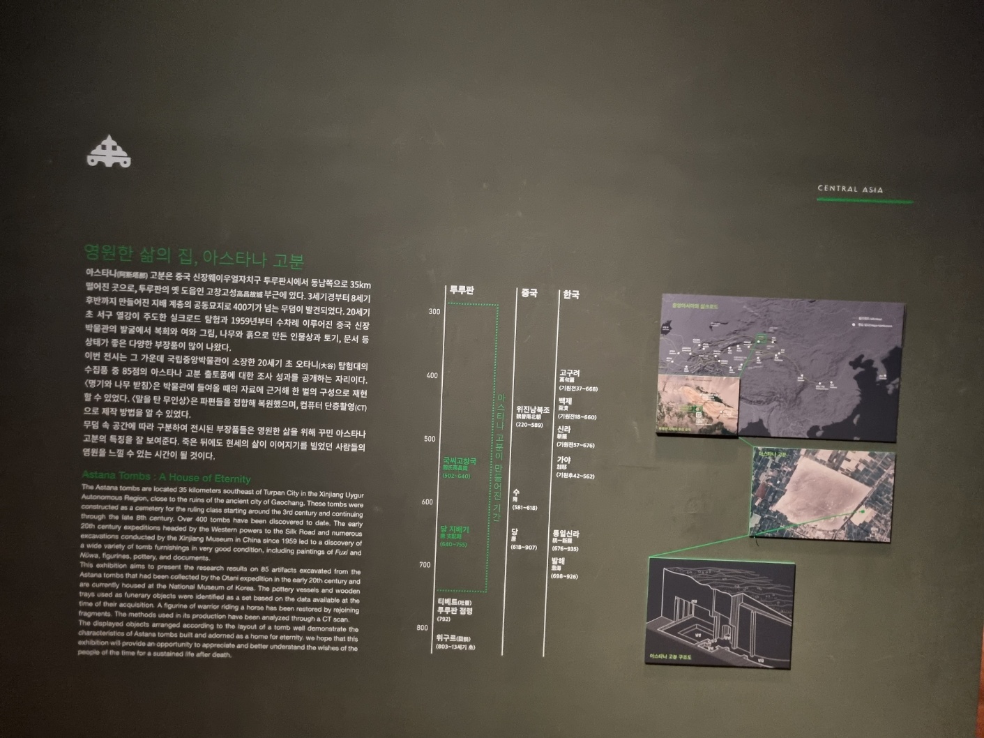 입구 안내문에도 적혀 있듯이 중앙아시아는 동서문명이 통하는 길로, 동서문명의 교차로 큰 번영을 누렸던 지역이네요.
