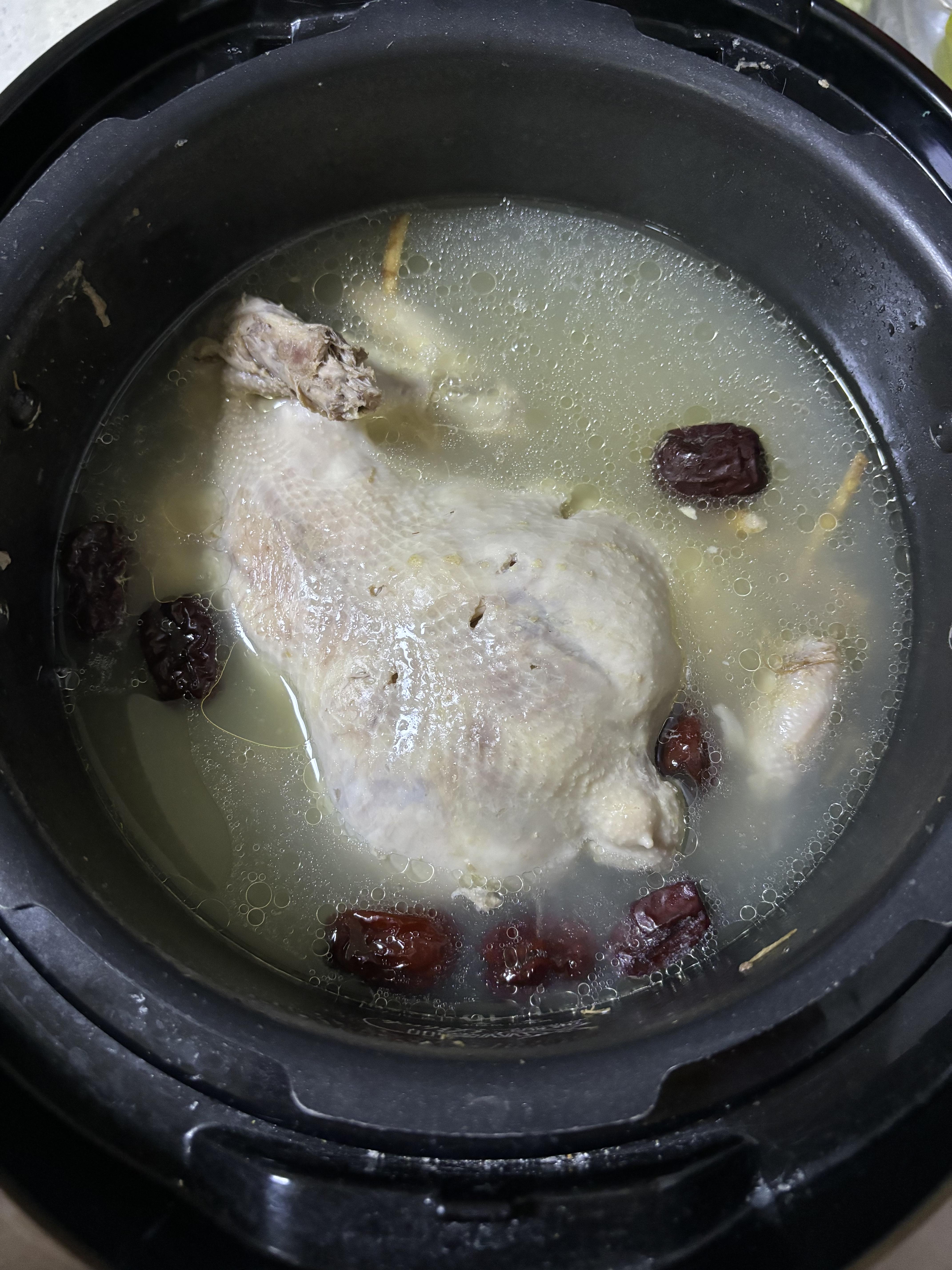 집에 있는 대추, 황기, 인삼, 마늘에 물넣고