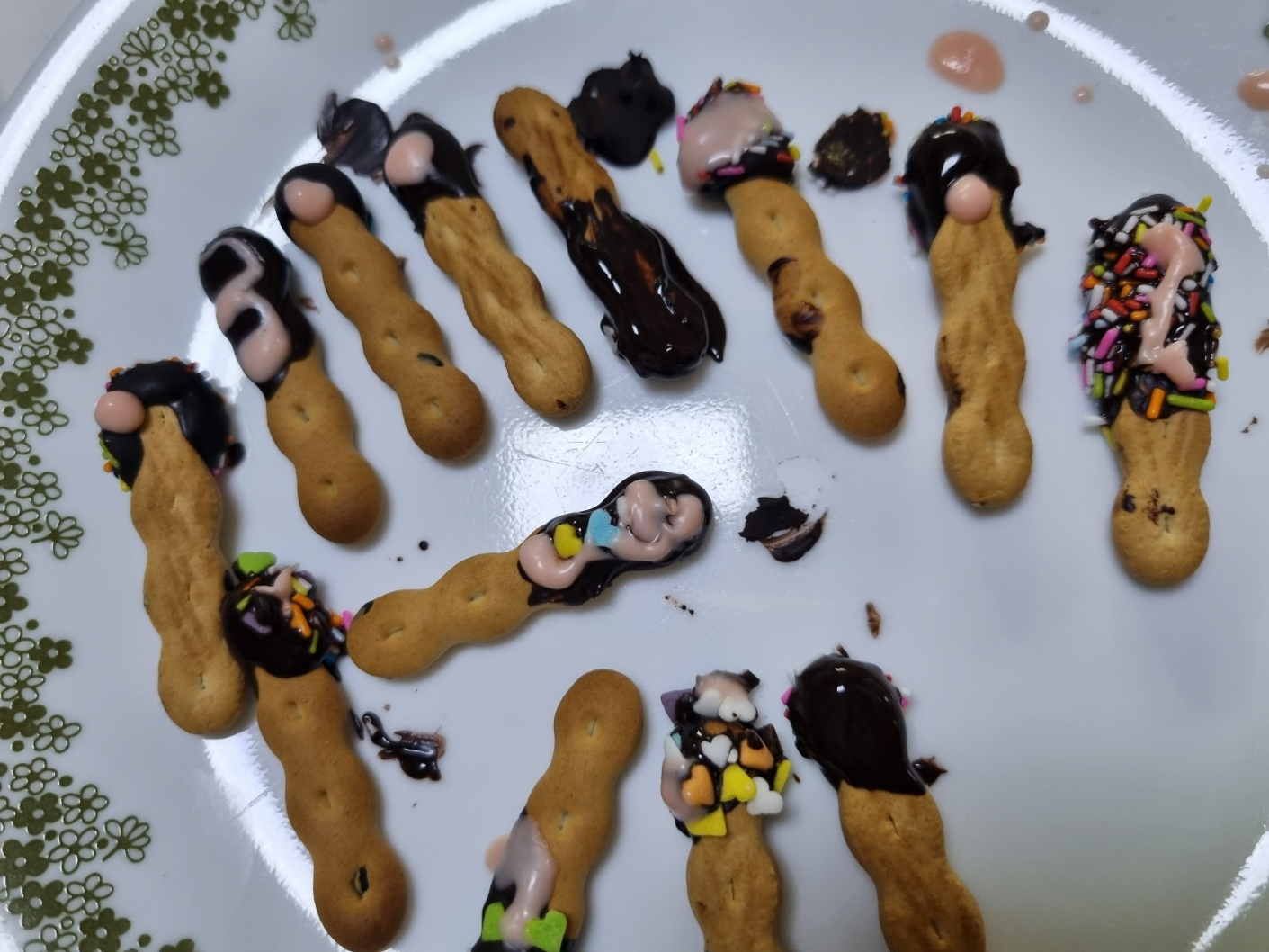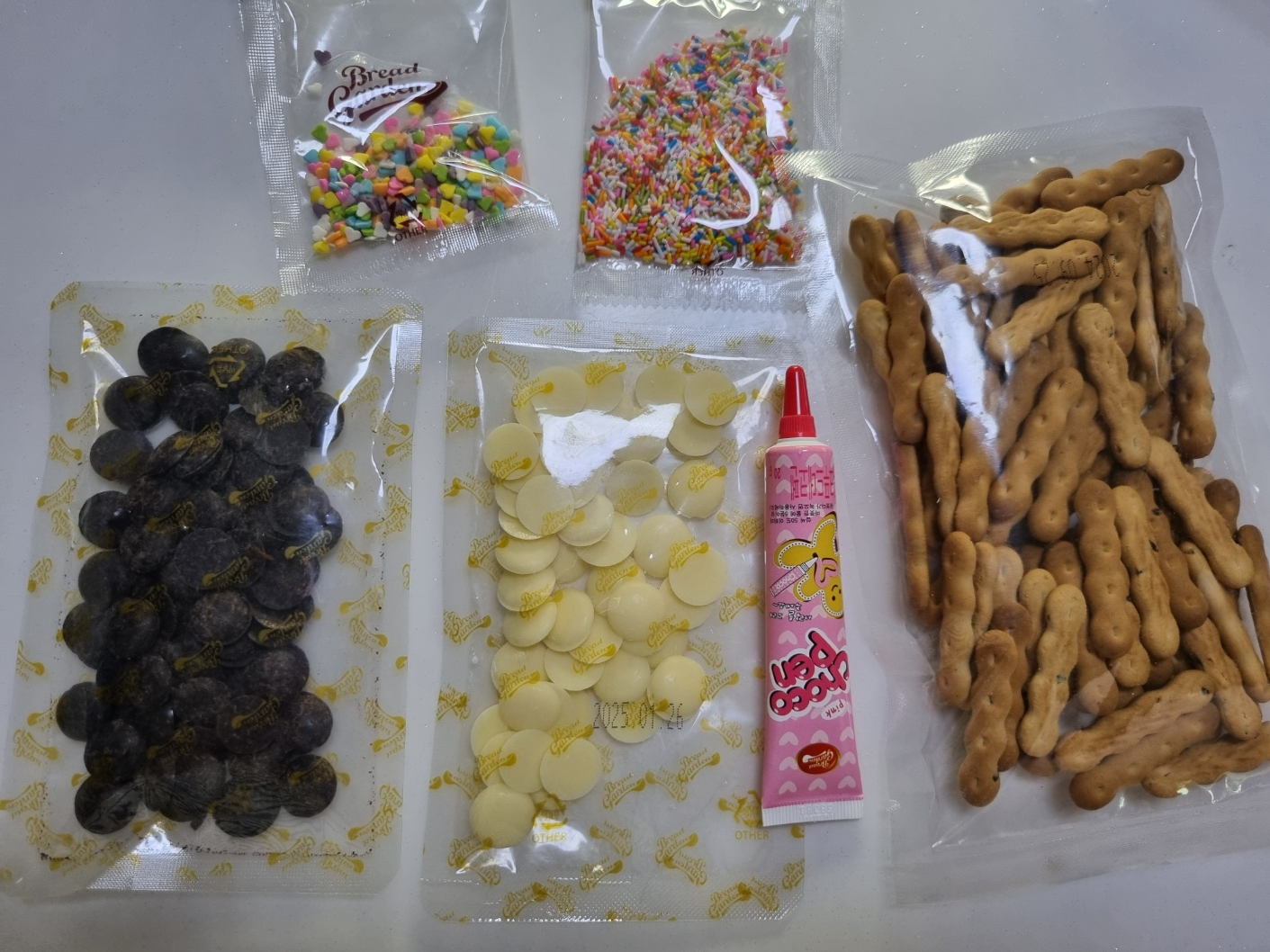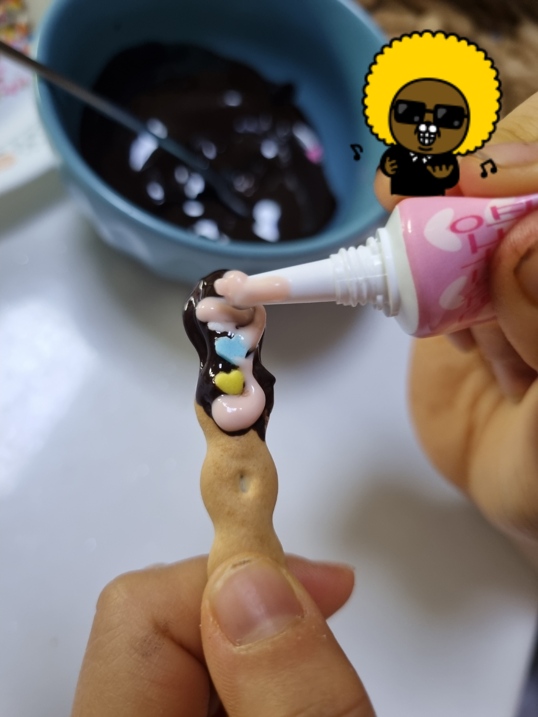 중탕에 잘 녹인 다크 초콜렛과 핑크 푸드데코펜으로
