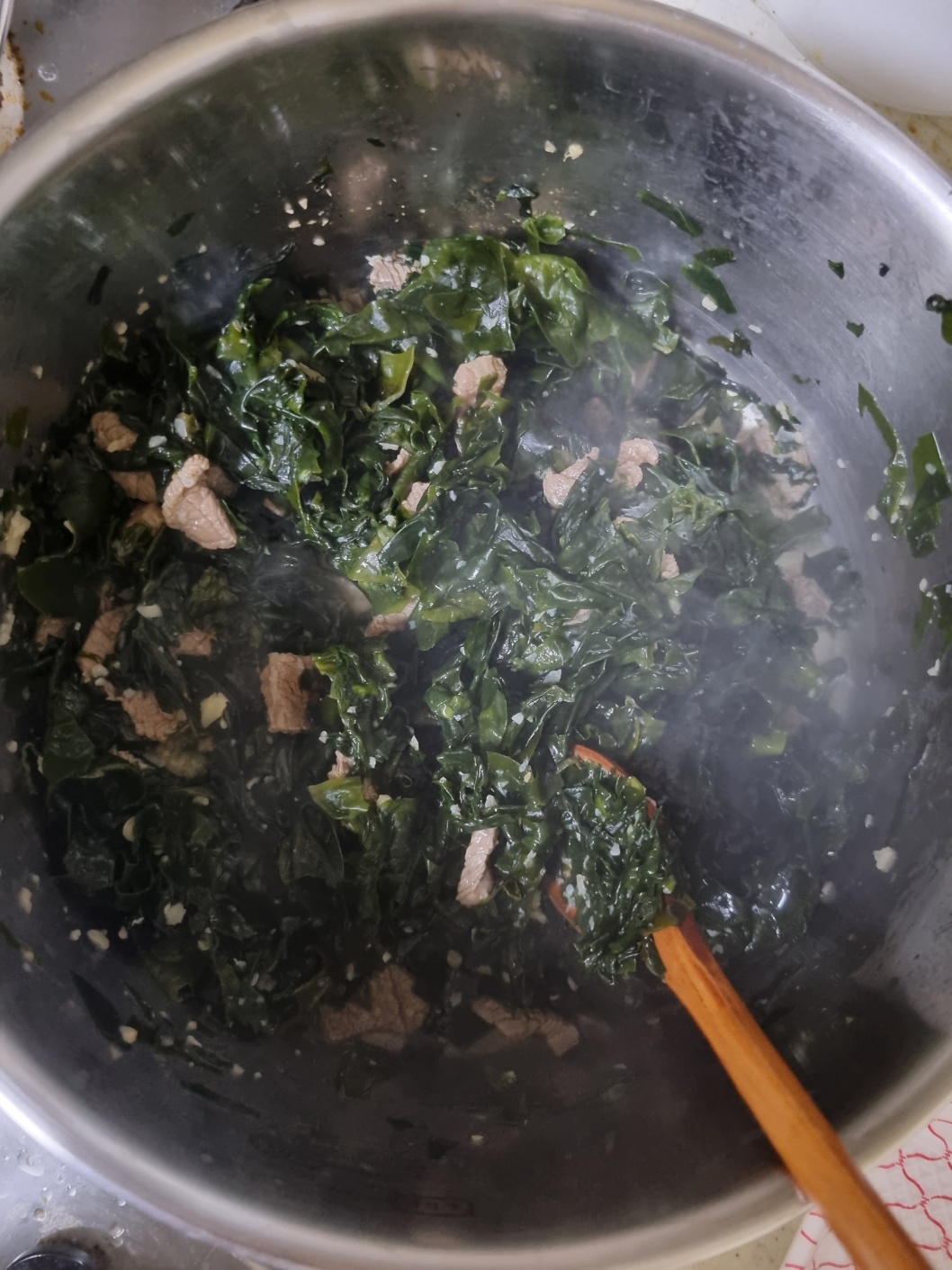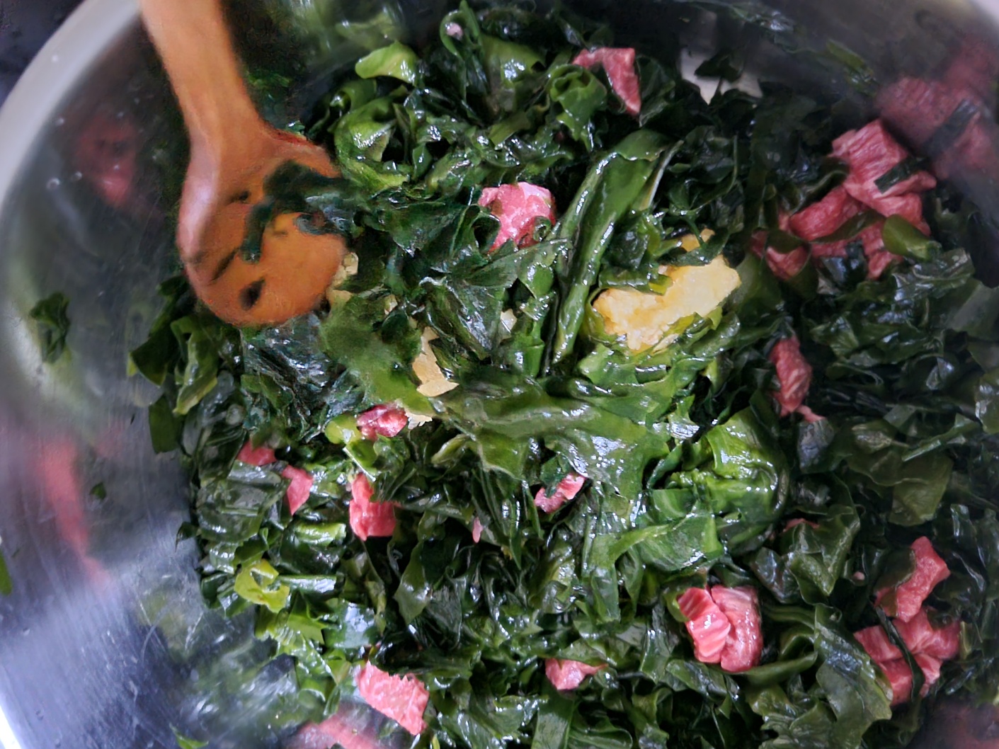 미역이 푸른색을 띌 때까지 열심히 볶아 주세요.