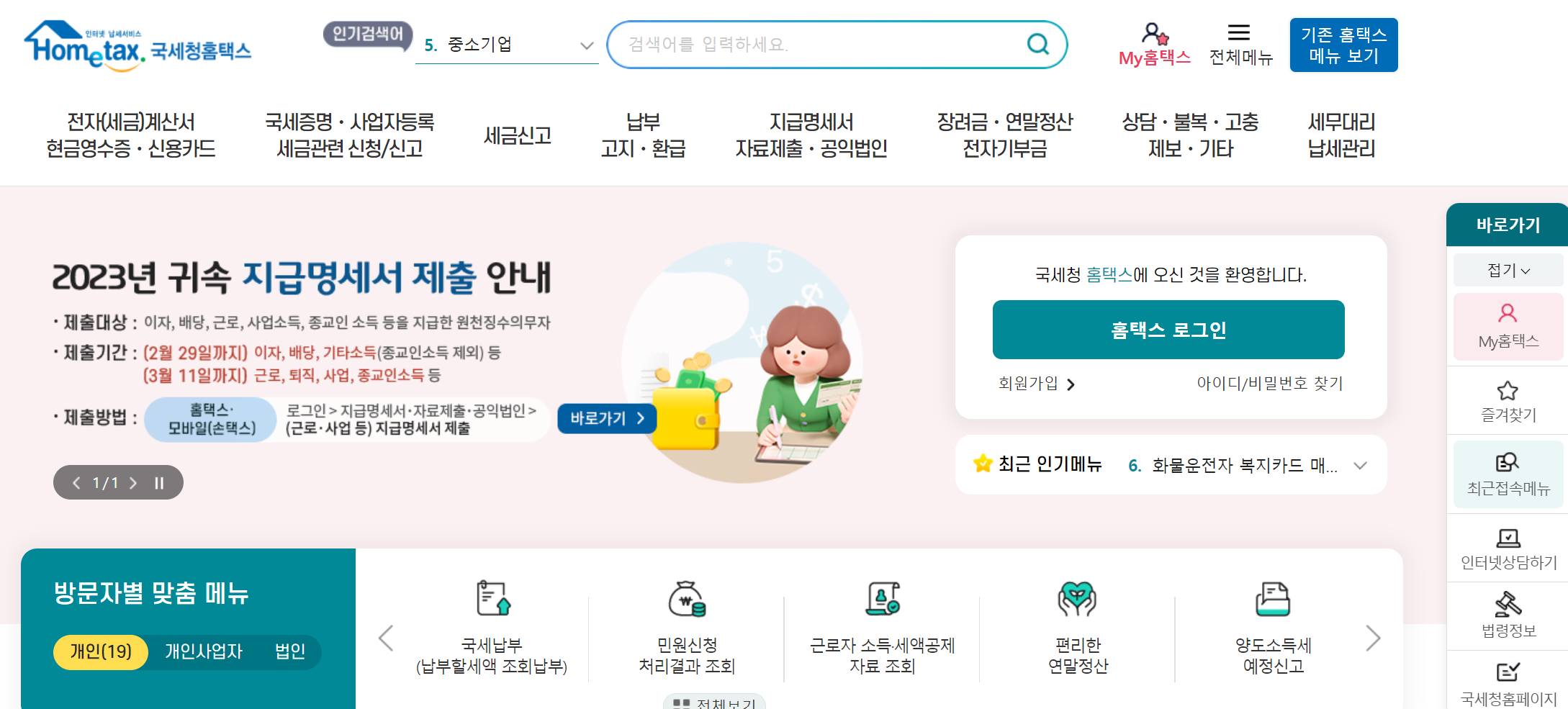 1. 국세청 홈텍스에 들어가세요.
